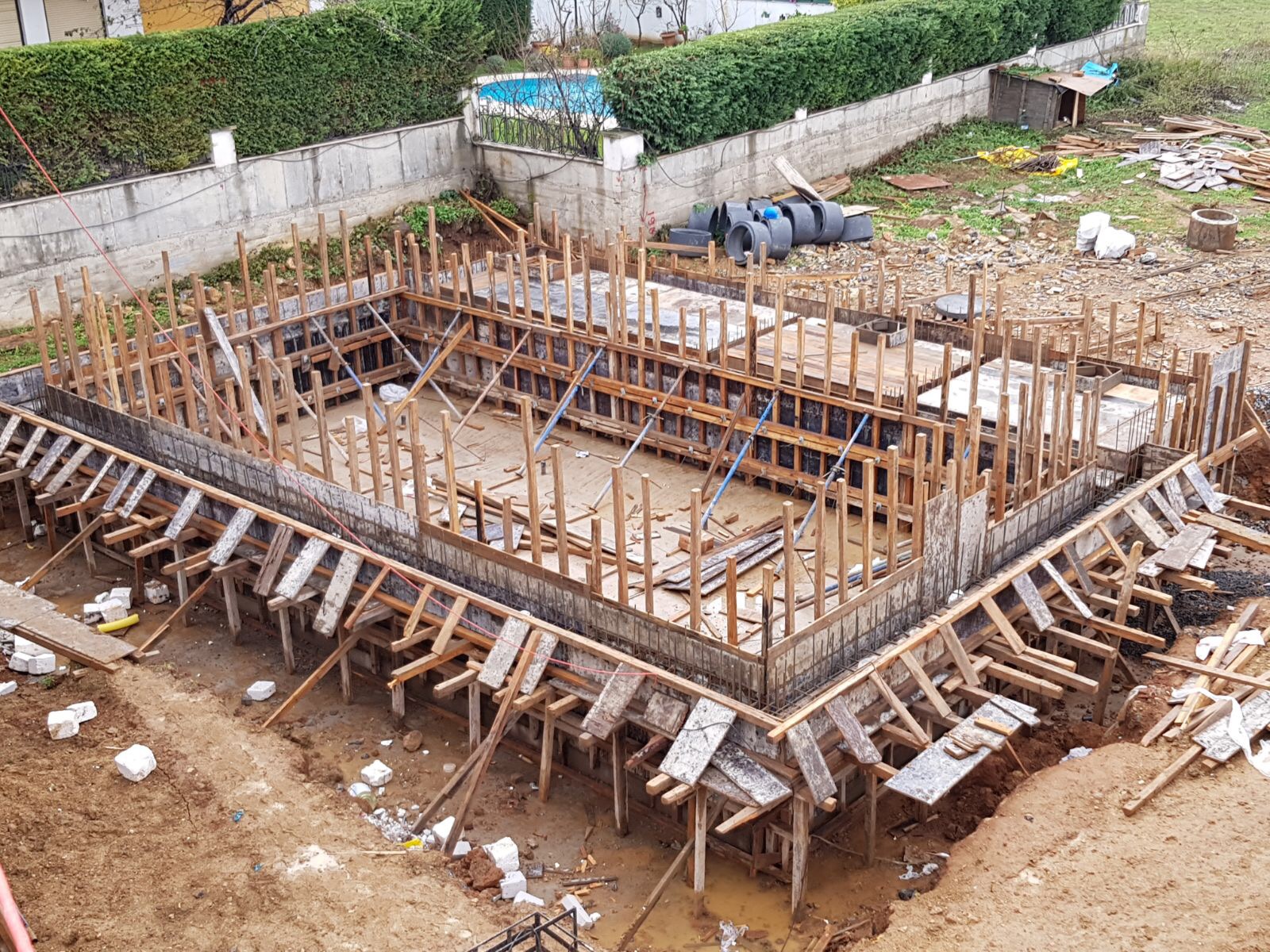 Kalıp Hazırlığı: Havuzun çevresine betonarme kalıp kurulur ve havuzun dış çeperleri oluşturulur.